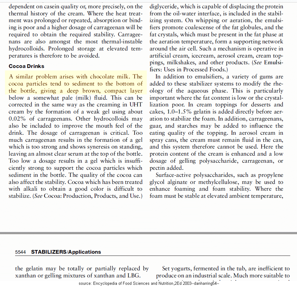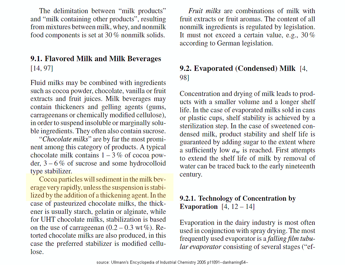 Here are 2 references discussing the physical stability problem of cocoa particles during chocolate milk production