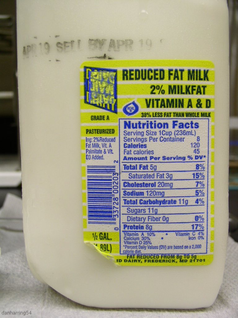 Photos of bottom of the milk jug sticking out from a shelf
