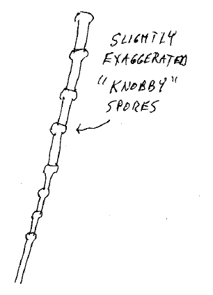 From my informal “Notes to self” – (I wasn’t a Microbiologist): “…Compared to what I usually see (in food or drink products with plenty of nutrients), there was less branched hyphae and fewer prominent round spores…