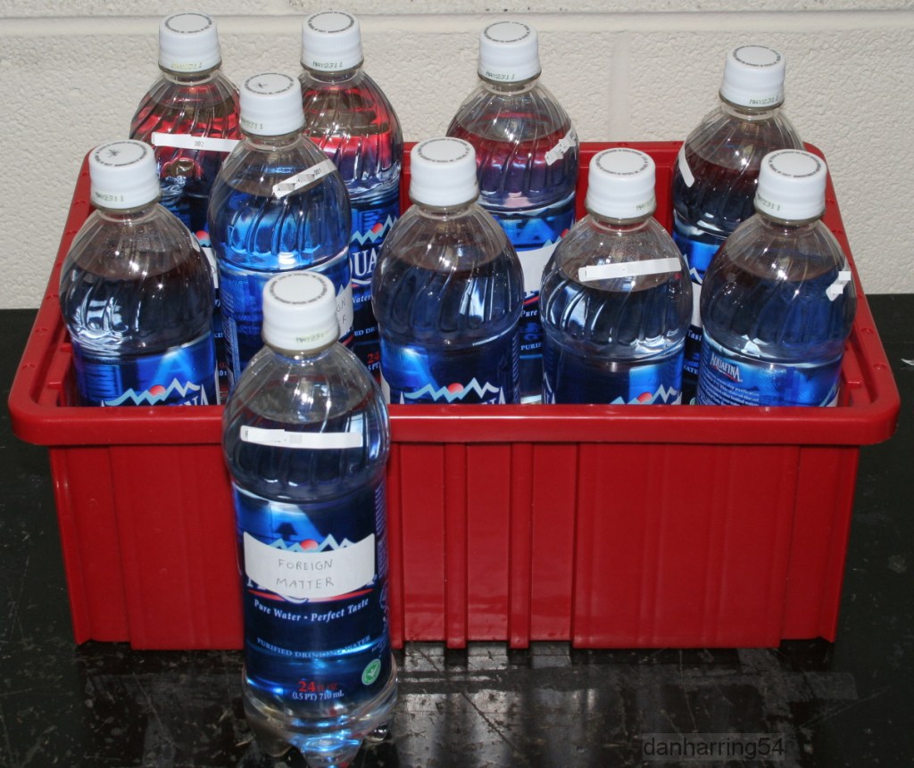 …Even though the caps were fully tightened and well-sealed when I examined them, it is conceivable that if the bottles or cases were on their side (or upside down), extraneous material could get inside the bottle, under some conditions. The outside of the containers and caps were not dusty or dirty or scratched-up when I examined them…”
